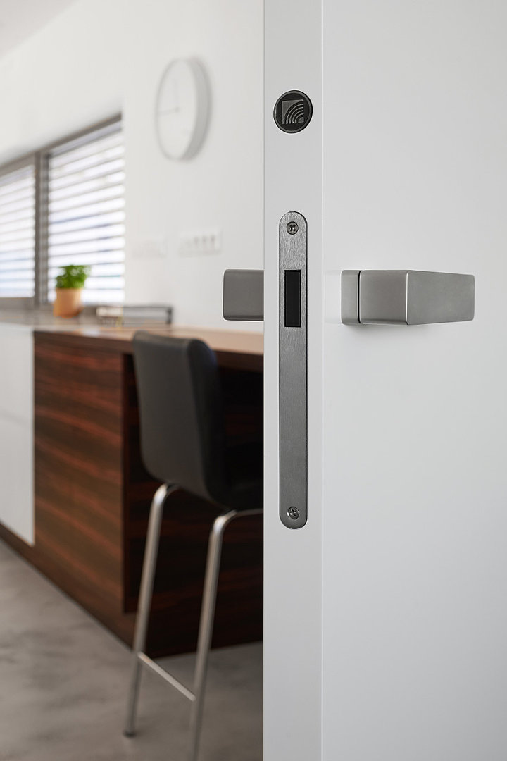 Menší pracovna vznikla návazností na oslnivě bílou lakovanou kuchyňskou sestavu.