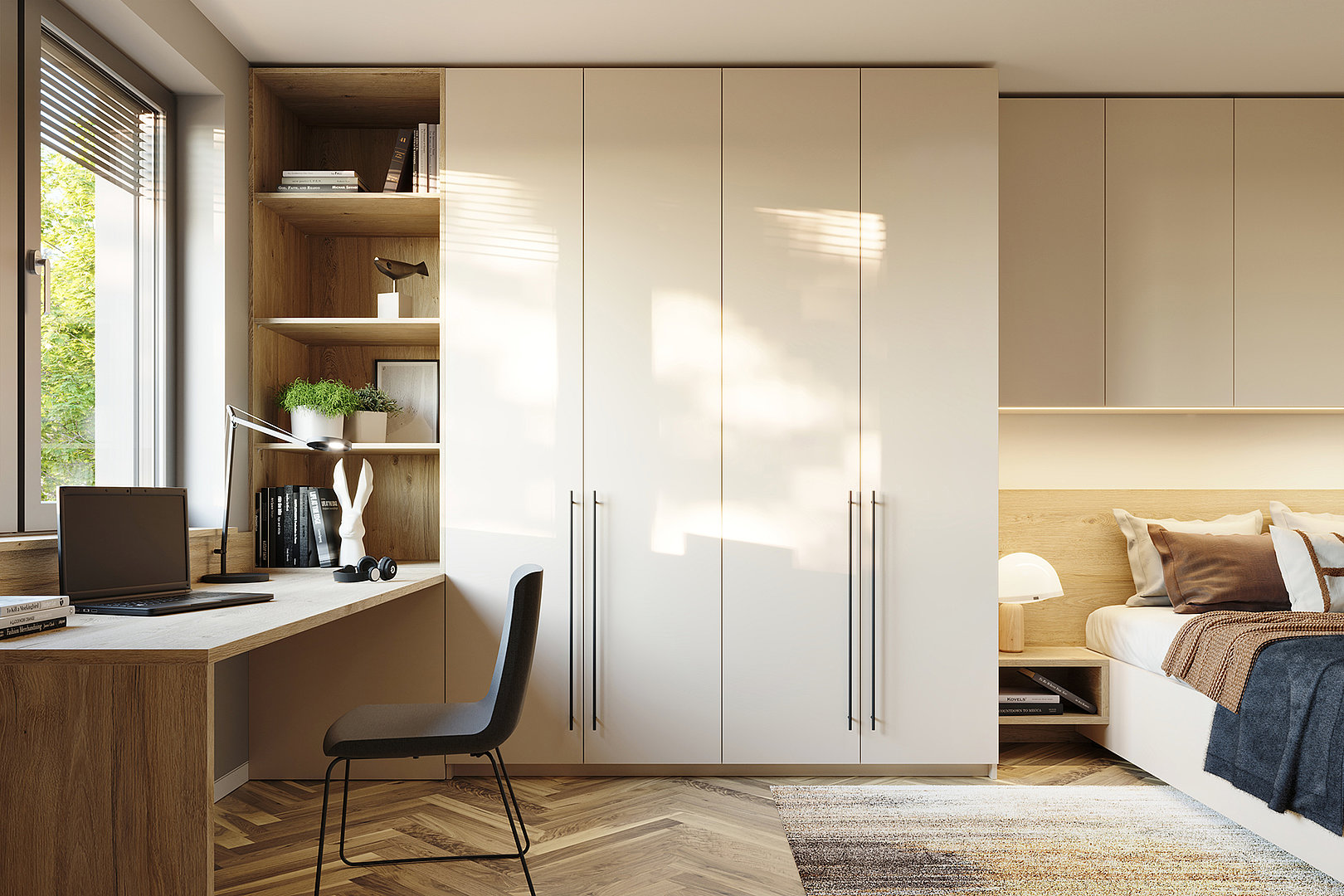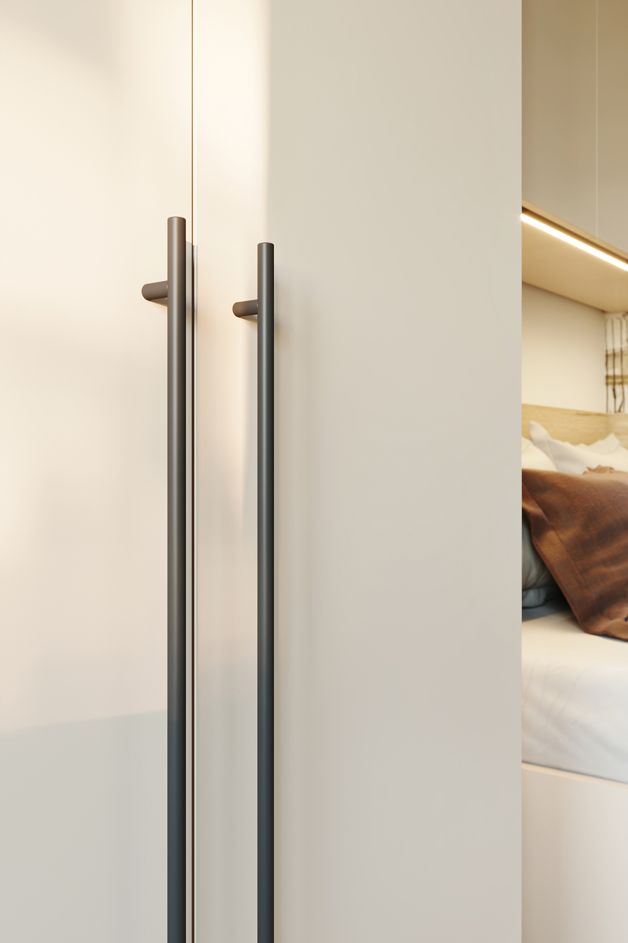 Šatní skříň OPTIMA navazuje na řadu modelů s hladkými dvířky a stejně tak ji lze kombinovat s vybraným typem úchytky nebo bezúchytkovým provedením.