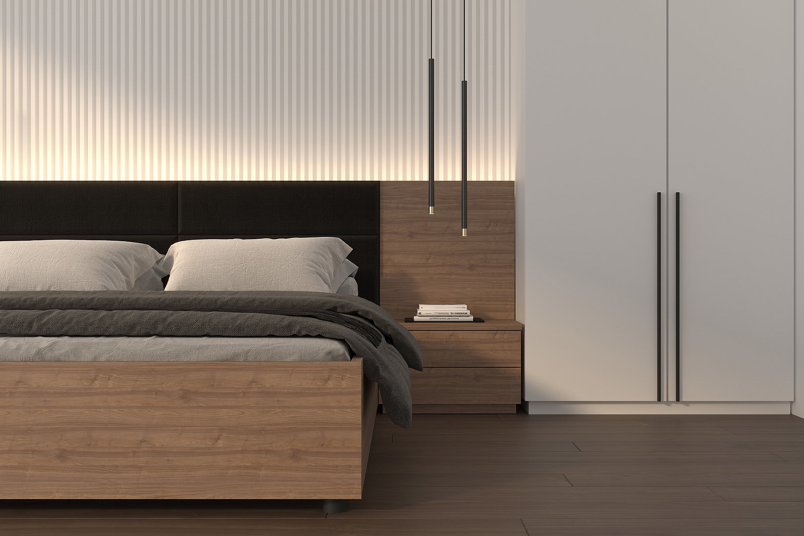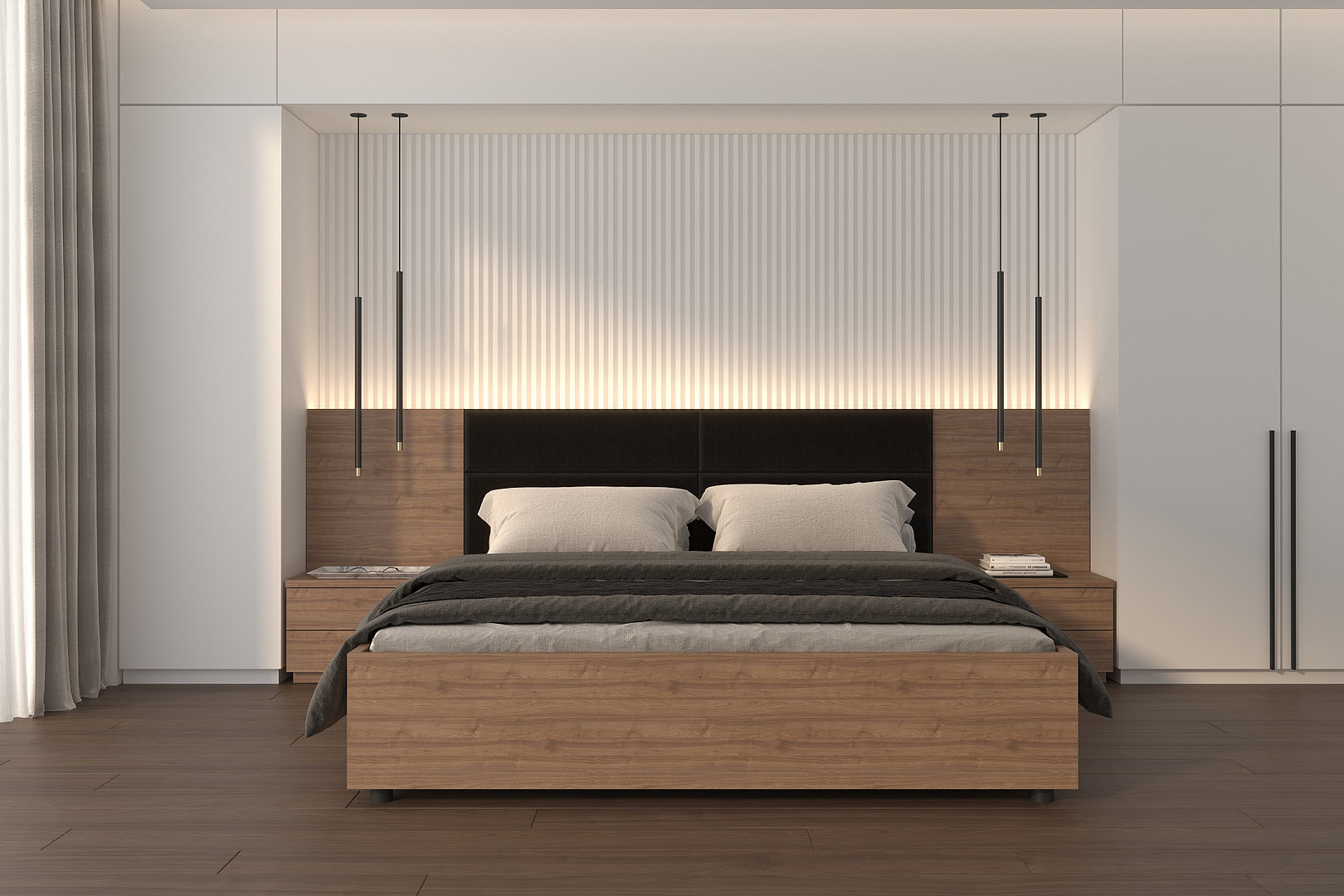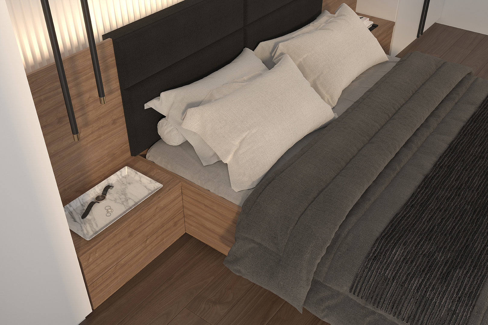 Zásuvkových nočních stolků kopíruje čistý a elegantní styl celé postele.