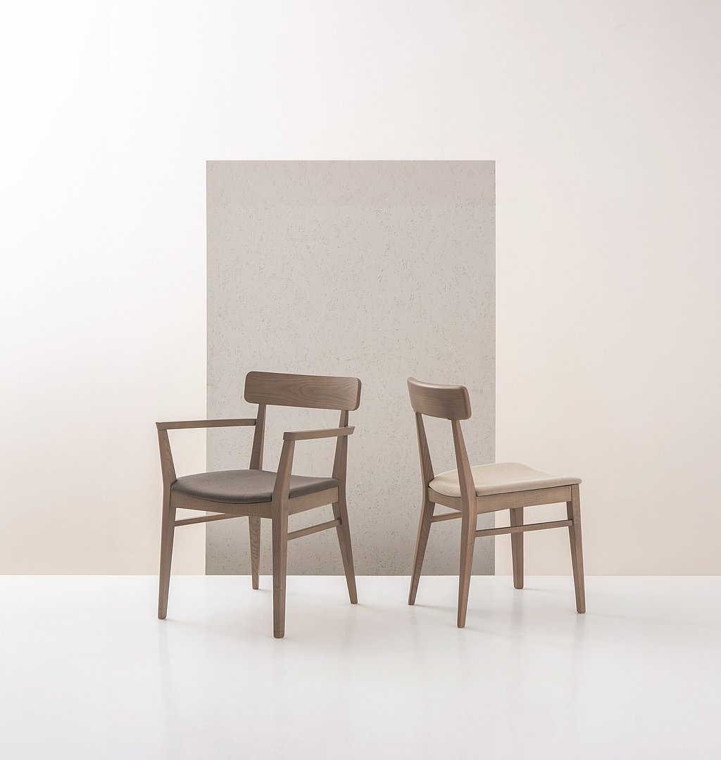 Kolekce COCO nabízí klasickou kuchyňskou židli, židli s područkami a barovou židli. Všechny varianty jsou dostupné se sedákem z dřevěné překližky nebo čalouněným sedákem.