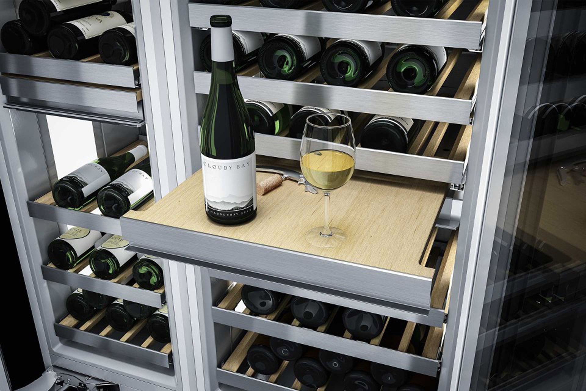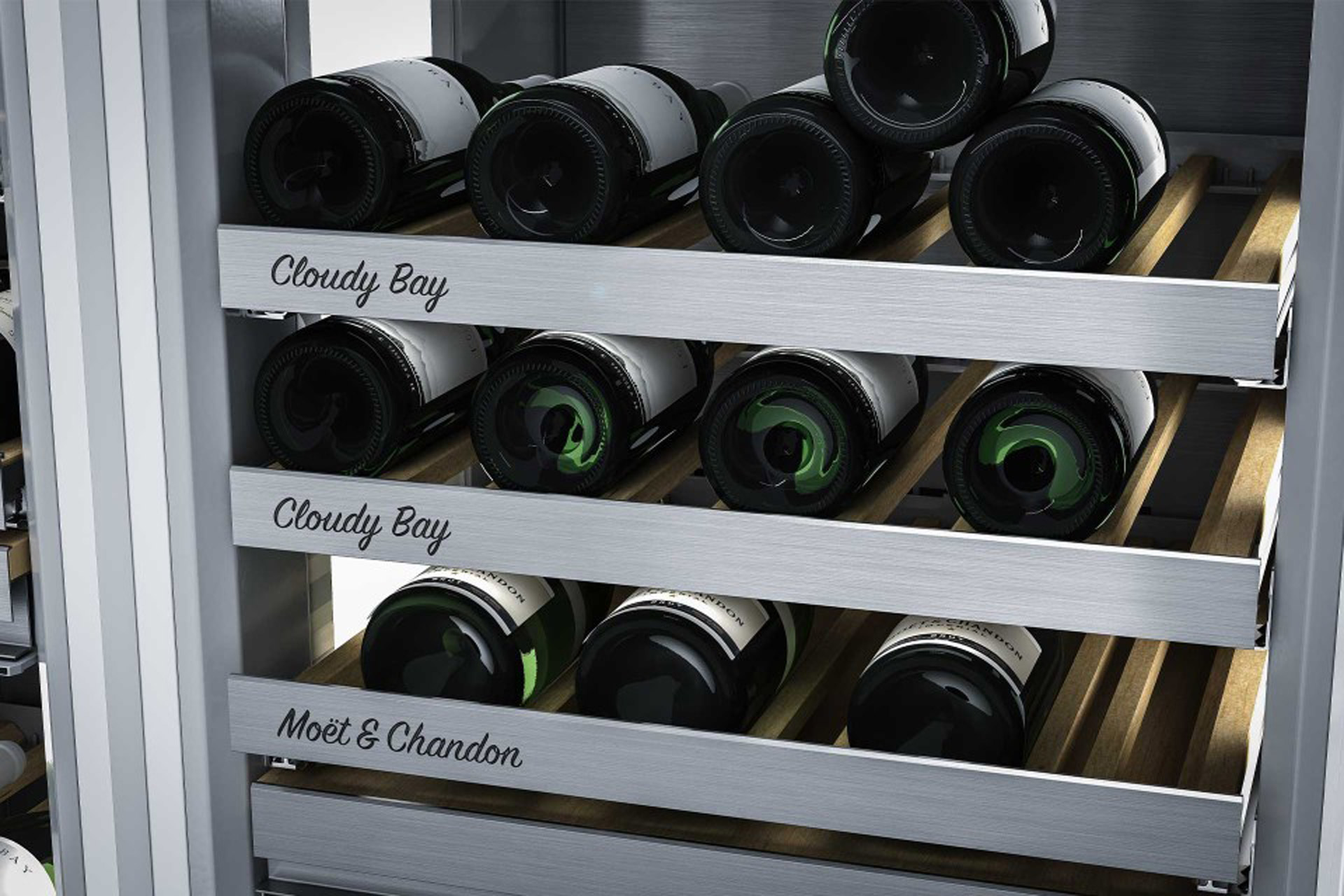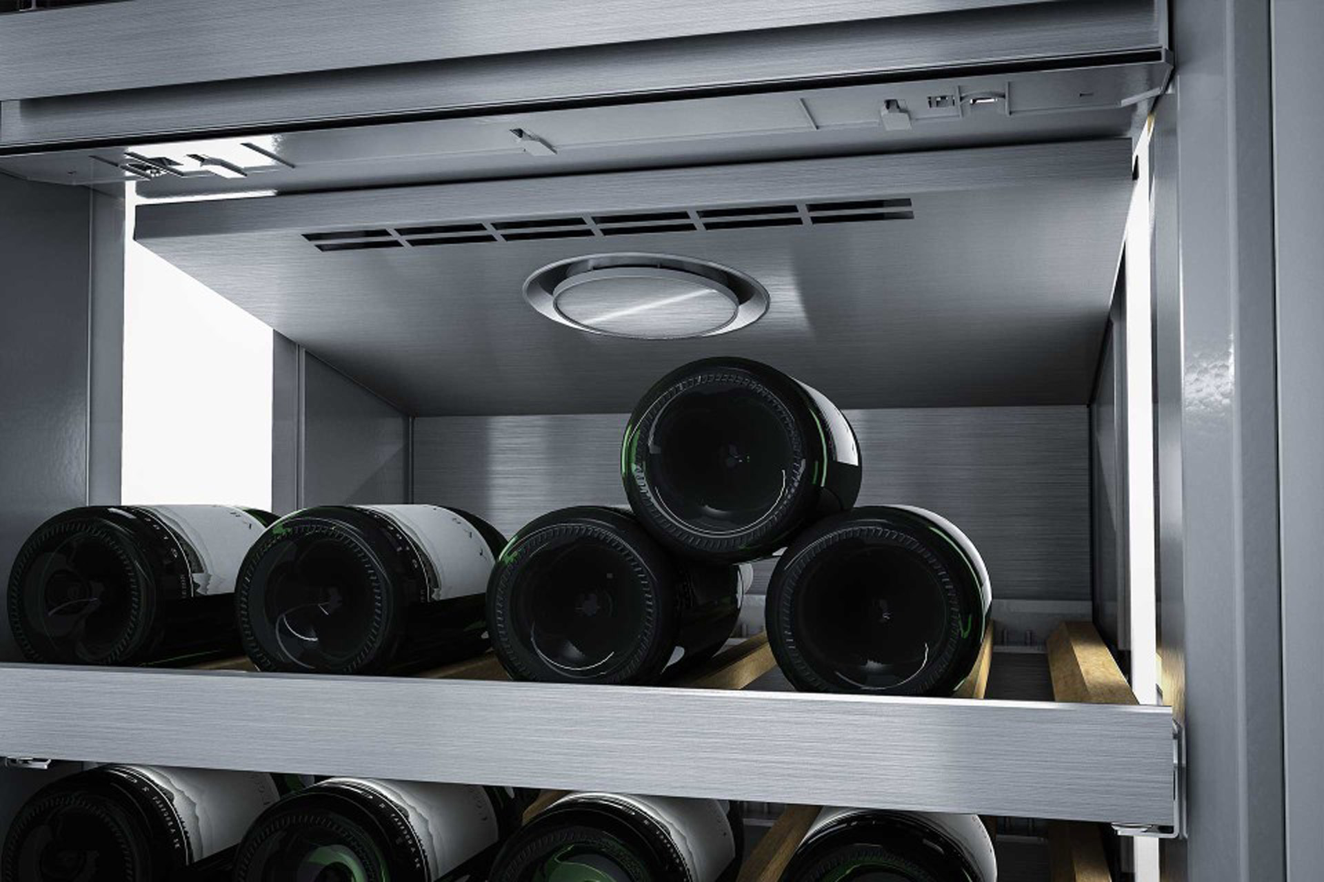 Flexibilní zásuvky umožňují přizpůsobení podle přání zákazníka i pro větší láhve vína a šampaňského. Uložíte tak všechny láhve své sbírky a plně využijete možnosti chladicí skříně na víno Monolith.