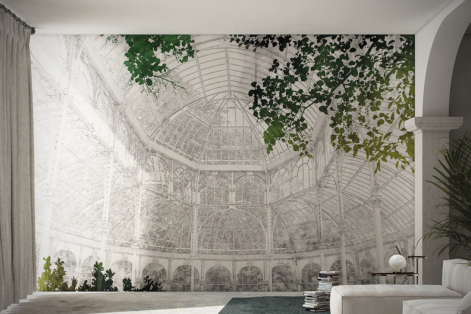 Poutavé prostředí vnitřní zahrady a elegantní verandy. Tapetu je vhodná pro jednoduché a rychlé zakrytí stěn, stropů, dveří a dveří skříní.