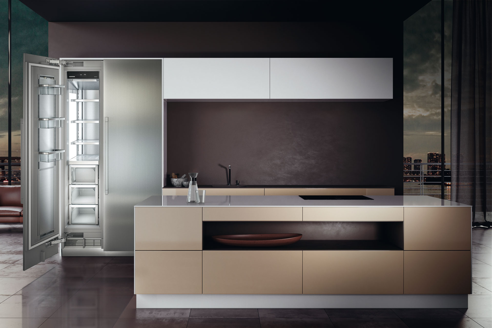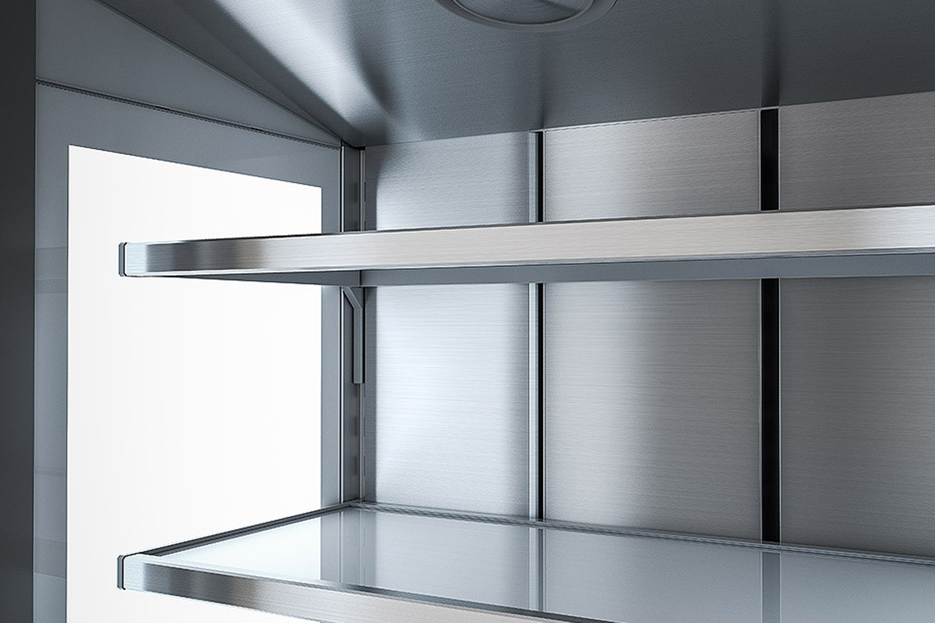Funkce InfinityLight vytváří ve vnitřním prostoru elegantní a rovnoměrné boční osvětlení a lze ji individuálně přizpůsobit. Osvětlení InfinityLight vyniká nejen brilantní vytříbeností, ale pomáhá zachovávat kvalitu potravin díky menšímu vyzařování tepla.