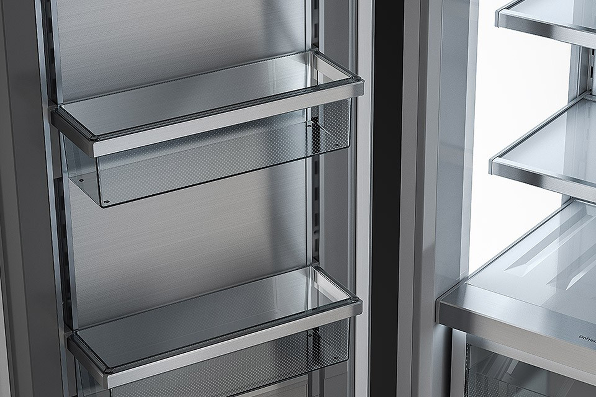 Jedinečný design mrazicích přihrádek podporuje optimální skladování potravin. zajišťuje, aby se studený vzduch mohl volně pohybovat a teplota tak zůstávala konstantní. Průhledné odkládací přihrádky ve dveřích mrazáku lze navíc individuálně přestavovat, takže nabízí dostatek místa pro malé až středně velké položky. V přihrádkách uvnitř mrazáku tak zůstává dostatek místa k uložení větších potravin.
